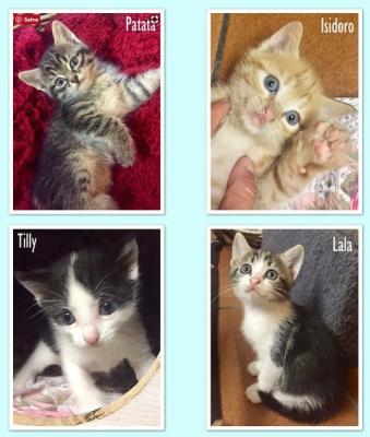 Salve a tutti noi siamo i Millini (3 femmine e 1 maschio rosso), figli di mamma Milla. Adottabili in coppia o separatamente, purchè i cuccioli non vivano soli. La mamma dolcissima è comunque socievoli anche con altri gatti. Adozione solo Lombardia. Verrà richiesta compilazione questionario conoscitivo e scheda di adozione. Non adatti per bimbi piccoli o con accesso a giardini su strada trafficata o come regali inaspettati. Al momento sono tutti già spulciati e sverminati. Per info: vassallirob@gmail.com » pau.beatrice08@gmail.com » Si trovano in provincia di Bergamo