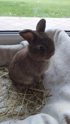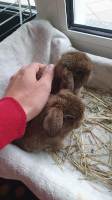 Vendo (anche singolarmente o a coppie), una volta finito lo svezzamento tra 3 settimane, coniglietti di razza pura nano ariete. Sono nati il 14 aprile da mamma Teti ariete nano blu di vienna e papà Northon ariete nano fulvo. Il sesso non è ancora definibile.