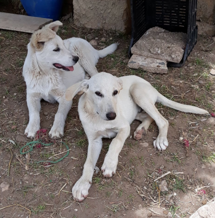 Hanno circa 6 mesi, futura taglia media, Sole è molto simile ad un Labrador, LUNA sembra ad un lupetto tutto bianco.