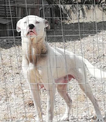 La mamma di cui alleghiamo la foto è una simil Pitt Bull, bainca, dagli occhi azzurri, dolce ed equilibrata, che con amore ha cresciuto i sui piccoli.