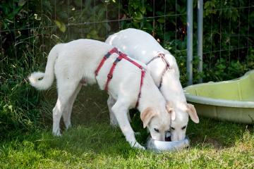 Marco e Joy, bellissimi cuccioli incrocio LABRADOR, approdati in canile a Bergamo, dopo un lungo viaggio dalla Sicilia, terra da dimenticare per loro…