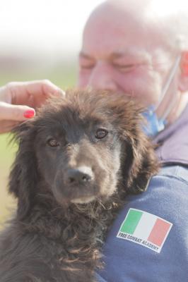 Un pochino timida, forse anche per essere rimasta sola, separata dal suo branco, ma dolce nello stesso tempo, futura taglia medio/grande.