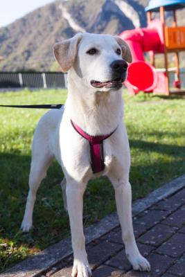 JOY, incrocio Labrador, adottata quando aveva 3 mesi ora ne ha 9, taglia media, dolcezza e bellezza infinita.