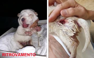 MERINGA, ha leccato il piccolo per pulirlo, le volontarie hanno visto che era pieno di morsicate e “bigattini” dette brutalmente larve, probabilmente qualche cane grande ha cercato di ucciderlo.