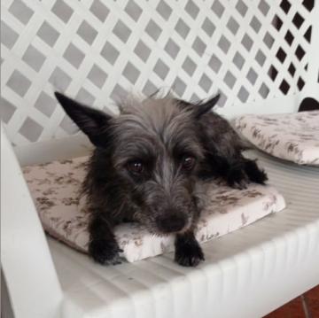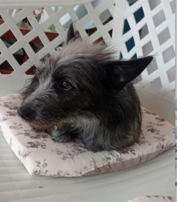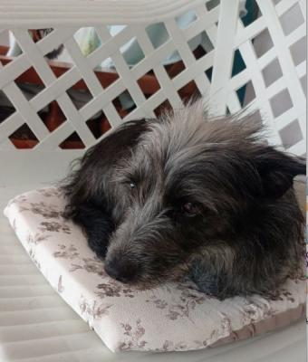BIRBA, 1 ANNO, UNO SCRICCIOLO DI 5 KG, TROVATA DOPO AVER PARTORITO CON I SUOI 6 CUCCIOLI, RIMASTA SOLA NON SI DÀ PACE