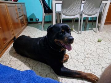 ROTTWEILER, THOR, 5 ANNI, MASCHIO CON PEDIGREE, CERCA CASA Purtroppo il vecchio proprietario per problemi famigliari non riesce più ad occuparsene. Thor adesso si trova in stallo in una pensione ma cerca urgentemente qualcuno che gli possa dare stabilità e l’amore che merita. E’ un cane giocherellone e affettuoso, ha un estremo bisogno di coccole e attenzioni, ma rimane pur sempre un rottweiler, quindi di carattere forte e dominante. Si cerca preferibilmente una persona che conosca già la razza e riesca a gestirlo. Non va d’accordo con altri maschi specie se dominanti, ok con le femmine. ➡️Inoltre il padrone è disposto a pagare di tasca propria le crocchette mensilmente per il mantenimento del cane.