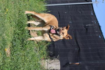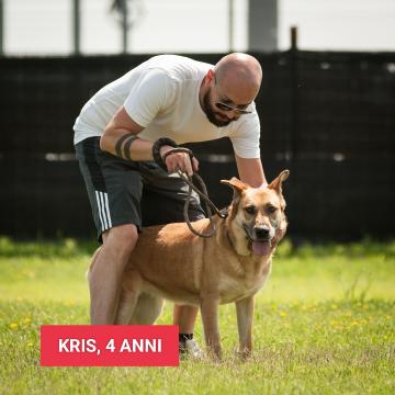 Kris, 4 anni, tg medio grande, timida ma molto dolce, brava al guinzaglio, ben socializzata, bisognosa di amore.