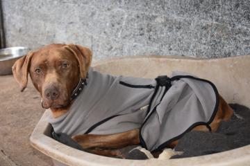 WEIMARANER INCR., COEN, 1 ANNO CIRCA, TG MEDIO GRANDE, RECLUSO SOLO, IN UN PICCOLO SPAZIO, CERCA LA RINASCITA E UNA FAMIGLIA CHE LO AMI PER SEMPRE!!
