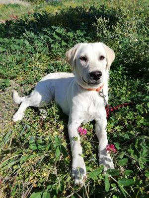 LABRADOR INCROCIO, HAPPY 6 MESI, TAGLIA MEDIA, SALVATA DOPO ESSERE STATA AGGREDITA DA UN BRANCO DI CANI, CERCA CASA