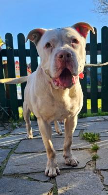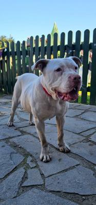 DOGO ARGENTINO MIX, 3/4 ANNI, BLANCA, SFRUTTATA COME FATTRICE E POI ABBANDONATA
