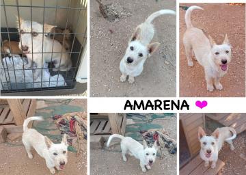 Amarena è dolcissima, sempre in cerca di coccole e certezze, riconoscente per ogni carezza ricevuta, dispensatrice di baci, socializzata con i suoi simili.