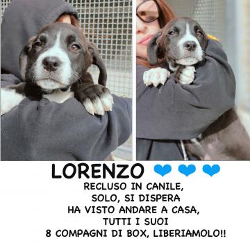 Lorenzo, è stato trovato con il fratellino che ha trovato casa, nel box c’erano 9 cuccioli, tutti sono stati adottati e lui????? E’ RIMASTO SOLO E SI DISPERA!!!