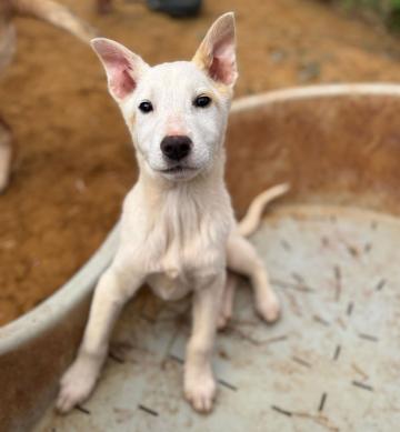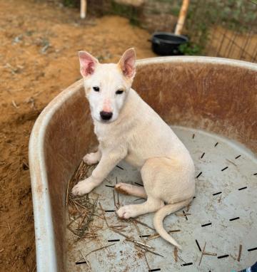 JINDO COREANO INCR., BRANCO E FILO, 4 MESI (15/11/24), TROVATI DENUTRITI, IN CONDIZIONI PESSIME, TRA L’INDIFFERENZA DELLA GENTE