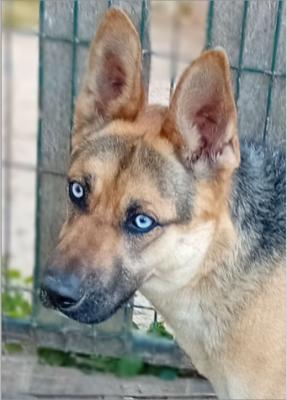 PASTORE TEDESCO/HUSKY INCR. CARLA 9 MESI (01/07/24) , OCCHI DI GHIACCIO E CUORE GRANDE, ABBANDONATA CON PETTORINA E GUINZAGLIO