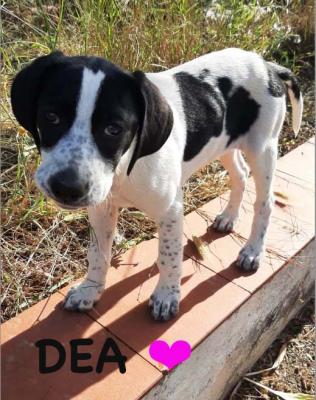 Mamma Pointer si è avvicinata alla tenuta di una famiglia, magra scheletrica, la pelle attaccata alle ossa, sfinita, non si reggeva, l’hanno sfamata e accudita perché le mammelle erano di una “futura mamma”, dopo 10 giorni sono nati 8 cuccioli meravigliosi, due sono morti, 6 sono sopravvissuti (di cui uno è adottato) ed ora tocca a loro.