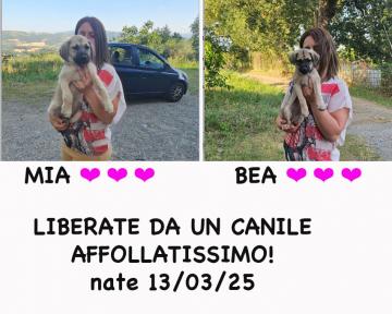 BEA e MIA, 3 MESI (13/03/25), TAGLIA MEDIA, RECLUSE IN CANILE DA QUANDO AVEVANO 30 GIORNI, CERCANO CASA MIA e BEA, trovate abbandonate a soli 30 giorni di vita, finite in uno squallido box di un canile affollatissimo, una volontaria le ha liberate e portate in uno stallo, evitandogli l’ergastolo a vita. Sono due cucciole bellissime, con tanta voglia giocare, compatibili con cani e gatti, ora sono pronte per una vita da favola e una famiglia per sempre Verranno affidati con regolare modulo di adozione, disponibilità a visite post adozione, vaccinati, microchippati, sterilizzazione obbligatoria.