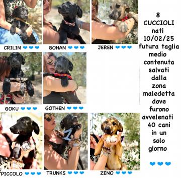 8 CUCCIOLI DA SALVARE, 5 MESI (10/02/25), FUTURA TAGLIA MEDIO CONTENUTA, PORTATI IN SALVO DALLA ZONA MALEDETTA, DOVE FURONO AVVELENATI 40 CANI IN UN SOLO GIORNO
