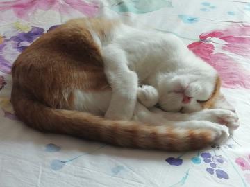 È un gatto di 15 mesi, bianco ed arancione. Maschio, castrato e senza microchip. Portaba un collare nero.