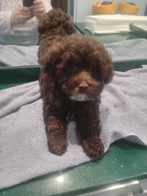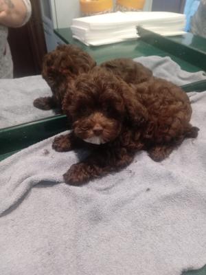 Splendido MALTIPOO maschio di 2 mesi color cioccolato nato in casa IL 25 FEBBRAIO 2024 pronto subito abituato alla traversina