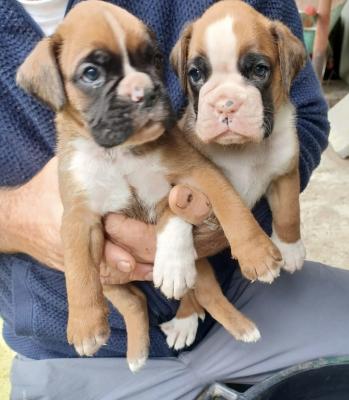 Vendo cuccioli di Boxer 2 maschi e 2 femmine tutti di colore fulvo . Con pedegree. Genitori visibili, di mia proprietà . Si possono vedere presso la mia abitazione . Verranno ceduti con pedegree, prima vaccinazione, microchip e già sverminati . Nati il 16 aprile 2023 . Prezzo trattabile .