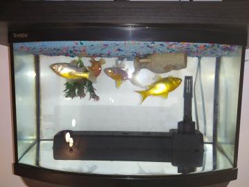 Vendo acquario d'acqua fredda 50cm x 30cm x 36cm con pompa e filtri. Comprensivo di 4 pesci e allestimento. Come da foto. No spedizione.