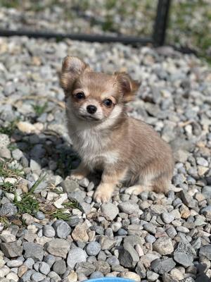 Chihuahua maschio a pelo lungo meraviglioso. Il cucciolo ha 90 giorni e verrà consegnato completo di tutte le vaccinazioni e microchip