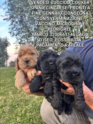 Vendo cuccioli di Cocker Spaniel inglese, con Pedigree, vaccinazioni e microchip. Genitori visibili, cuccioli pronti per fine Gennaio.