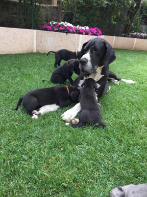 Vendo ultimi 3 CUCCIOLI DI ALANO femmine a manto NERO eccellenti. Ottima genealogia e struttura fisica , esenti da patologie ereditarie. Padre e madre campioni di bellezza. I cuccioli vivono in un ambiente domestico a contatto con altri cani e persone e per questo sono molto socievoli. Si vendono svezzati e vaccinati con microchip e libretto sanitario. La madre, come in foto, è visibile insieme ai cuccioli. È possibile venire a vederli e giocare con loro.