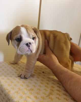 Privato vende bellissimi cuccioli di Bulldog Inglese nati e cresciuti in casa. Genitori entrambi con pedigree di alta genealogia, discendenti di Britanic Major Sharpe Ocobo campione del mondo. Genitori visibili . I cuccioli vengono consegnati con microchip , sverminazione, 2 vaccinazioni, certificato di buona salute, pedigree. Prezzo: 1.500,00 euro.