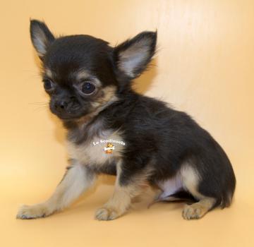 chihuahua cucciolo pelo lungo nero focato