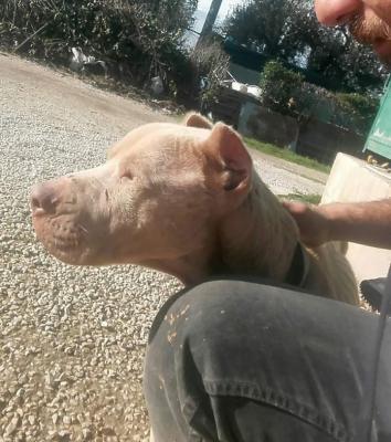 Pino è un bellissimo pittbull adulto. Cerchiamo adozione urgente per lui in quanto non sopporta più di stare in una gabbia del canile. Lui sogna solo di correre con qualcuno, di essere felice finalmente con una famiglia sua. Nonostante sia seguito da un nostro volontario per quanto riguarda lo sgambamento e passeggiate, continua a regredire emotivamente e fisicamente. Escludiamo patologie alimentari, la sua drastica perdita di peso è dovuta principalmente ad un fattore ambientale (canile) e agli alti livelli di stress.