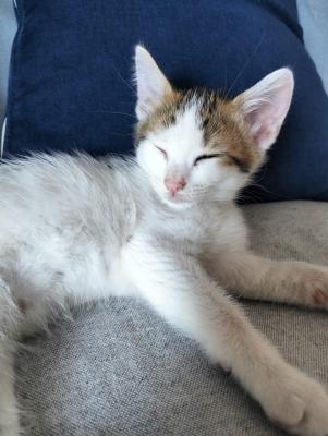 Regalo gattina di 2 mesi. Svezzata e abituata a usare la lettiera. Giocherellona e molto affettuosa. Regalo anche lettiera, trasportino e giochi vari.