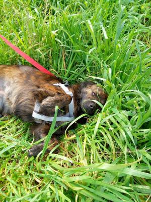 Cagnolina di un anno e mezzo circa, dolce e supercoccolona, pelo medio maculato. Occhi da cerbiatto e pancia in su ogni 5 minuti. E’ una taglia media di 17/18 kg. Si cede in tutto il centro nord già vaccinata e sterilizzata con libretto veterinario a famiglie che se ne prendano cura per tutto il corso della sua vita.