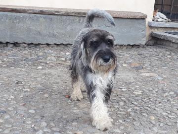 Cagnolina smarrita Schnauzer sale e pepe di nome Nora