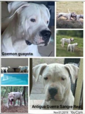 Dogo argentino cuccioli, figli di Goemon Guayota e Antigua Guerra Sangre Real, ottenuti dagli incroci dei campioni selezionati dalle migliori linee di sangue al mondo. Linea di sangue con 4 campioni mondiali, diversi campioni esteri, internazionali, europei, italiani, sociali, riproduttori ecc...tra cui il dogo più titolato di sempre Calaco's Verdes Pampa. Disponibili 9 cuccioli, sia total white che pirati. allevati da vero intenditore della razza con esperienza trentennale. I cuccioli saranno ceduti con libretto sanitario, vaccinazioni ,microchip e prestigiosissimo pedigree. Euro 800 total white 700 pirati. Andrea 3515997418