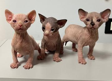 Vendo tre bellissimi maschietti sphinx, in perfetta forma. Due maculati e un manto Rosa. Pieni di energia, giocherelloni e tanto amorevoli tra loro in attesa di un padrone per dargli tanto amore come è nel l'indole nella loro razza. Verranno dati con primo vaccino,sverminati e già abituati alla lettiera a fine luglio. Vi aspettiamo, anzi vi aspettano per essere conosciuti anche per una visita senza impegno o se in caso interessati per la prenotazione..