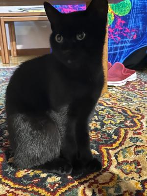 Smarrito ADE - cucciolo di gatto nero di 10 mesi, ha qualche pelo bianco e con gli occhi verdi in zona Meda - Via Delle Grigne. Se lo vedete per piacere contattatemi!