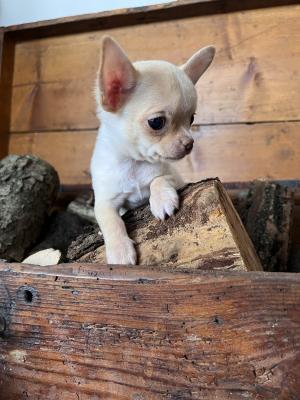 Il nostro allevamento ha Due bellissimi maschietti di Chihuahua a pelo corto, uno bianco e uno crema con ottimo pedigree, disponibili subito, abituati sulla traversina.