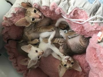 Allevamento amatoriale nel Malcantone . vende bellissimi cuccioli da compagnia Siamesi Orientali per la fine del mese di maggio 2021 (1 cucciolo tabby lilac spotted e 2 cuccioli tabby spotted chocolate) Euro: 1'400.- . vaccinati, svermati, con microchip, pedigree, con obbligo di sterilizzazione