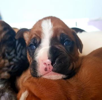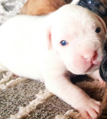Vendo cuccioli maschi razza boxer, 1 bianco e 3 fulvi,vaccinati e sverminati,disponibili per i primi di maggio