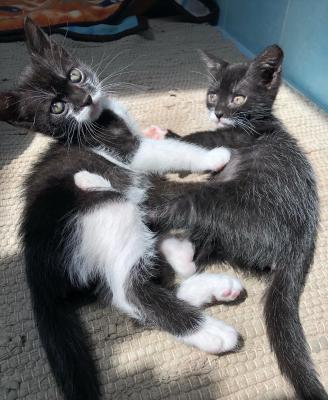 Soia e Ragù sono nati il 16 marzo e non sotto una buona stella. La mamma aveva bisogno di cure e non è riuscita ad occuparsi di loro. Quando sono stati recuperati erano due mollichine congelate, completamente senza forze, disidratati, “svuotati”, due mucchietti di pelo e ossa, stretti l’uno all’altra, in attesa di morire…e ci è mancato davvero poco! Ma ora, a due mesi e pochi giorni dal ritrovamento Soia e Ragù sono gli splendori che vedete, due piccoletti pieni di vita, curiosi, felici, affettuosi, amano le palline, amano fare la lotta, amano tantissimo la compagnia, sono due gran chiàcchierini e richiedono attenzioni a gran voce! Si cerca per loro adozione DI COPPIA, e li affideremo in tutto il centro e nord Italia, accompagnandoli personalmente fino a casa. Adozione in casa/appartamento con balconi e finestre in sicurezza