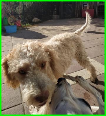 MAGOTTO è ancora con noi e non capiamo perchè un amore così non venga richiesto da nessuno! Lui è un bellissimo cucciolone simil lagotto di circa 1 anno, di taglia mediocontenuta, sano e sterilizzato. La sua diffidenza verso l'uomo causata da un brutto passato è decisamente migliorata, è ancora un pò timidino ma oggi gli basta poco tempo per prendere confidenza con le persone. Per questo motivo è consigliata l'adozione dove sia presente un'altro cane, che lo aiuti ad aprirsi ulteriormente, ma che gli sia anche compagno di giochi perchè Magotto è un gran giocherellone, buonissimo e pieno di vita. E' compatibile con i suoi simili di entrambi i sessi ed è possibile fare un test anche con i gatti. E' ora che Magotto abbia una sua famiglia, è un cagnolino davvero speciale e dopo quello che ha passato da piccolino se la merita davvero!!!