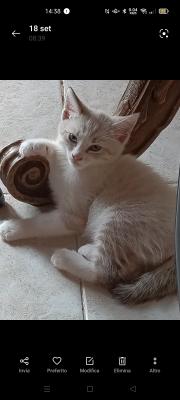 Gattina di due mesi con bellissimi occhi azzurri dolcissima cerca una famiglia. Rimborso spese.