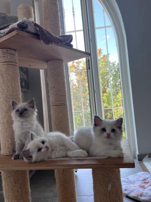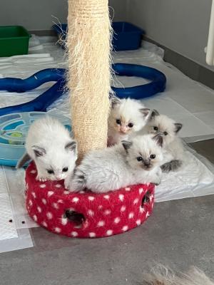 Disponibili cuccioli nati il 28.05.2023 in allevamento amatoriale riconosciuto ANFI e membro del Ragdoll Cat Club Italiano. I cuccioli sono varietà colorpoint, mitted e bicolor di colorazione blu. I cuccioli potranno lasciare la mamma ed essere adottati dopo il 10.09. I cuccioli al momento dell'adozione avranno pedigree ANFI, doppia vaccinazione pentavalente, microchip inserito, registrazione all'anagrafe felina nazionale, profilassi antiparassitaria e svermitatura eseguita. Il Ragdoll è il gatto noto per il suo straordinario carattere socievole e tranquillo, rilassato e fiducioso; i nostri cuccioli sono particolarmente buoni e socievoli, perfettamente integrati con il resto della famiglia poiche' vivono in casa con noi e con gli altri gatti adulti. I cuccioli saranno ceduti da compagnia o, se disponibili, da esposizione.