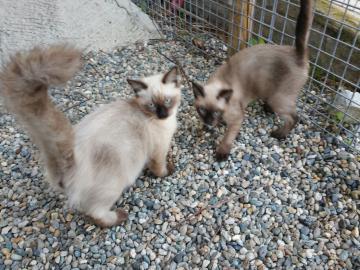 Disponiamo di ultimi due gattini siamesi thai, sono un maschietto seal point e una femminuccia tarataruga, saranno completamente svezzati a fine mese; proveniente da allevamento nei pressi di Alessandria 100% Italiano. Inoltre tra due mesi circa avremo una nuova cucciolata (saranno svezzati dopo almeno 60 giorni dalla nascita) e anche per questi cuccioli stiamo accettando le prenotazioni. Tutti i cuccioli verranno ceduti con la prima vaccinazione, sverminatura e antiparassitario (dati presenti anche su libretto veterinario). E’ possibile venire in allevamento per vederli dal vivo, senza impegno e si potranno conoscere anche i genitori. Riceviamo tutti i giorni ma solo su appuntamento. Prezzo 500 euro. Ritiro in allevamento, possibilità di consegna con rimborso spese in base alla destinazione. Per informazioni e/o appuntamenti contattatemi in privato. Pamela.