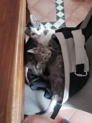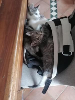 Regalo coppia di gattine, anche singolarmente, nate il giorno di Pasqua 2023, molto affettuose, abituate a usare la sabbiera