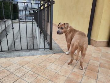 Amstaff femmina sterilizzata di 8 anni cerca una famiglia