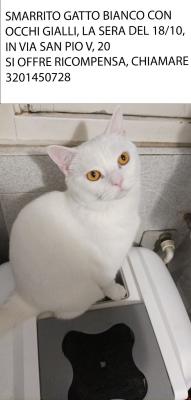 Smarrito gatto wuropeo bianco sterilizzato, offro ricompensa. 3201450728