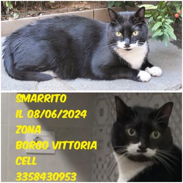nella sera del 08/06/2024 in zona borgo vittoria è stato smarrito Nerone,gatto di 7 anni,castrato