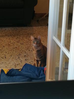 Smarrita gattina tigrata di piccola stazza in barriera di Milano il giorno 01 giugno.